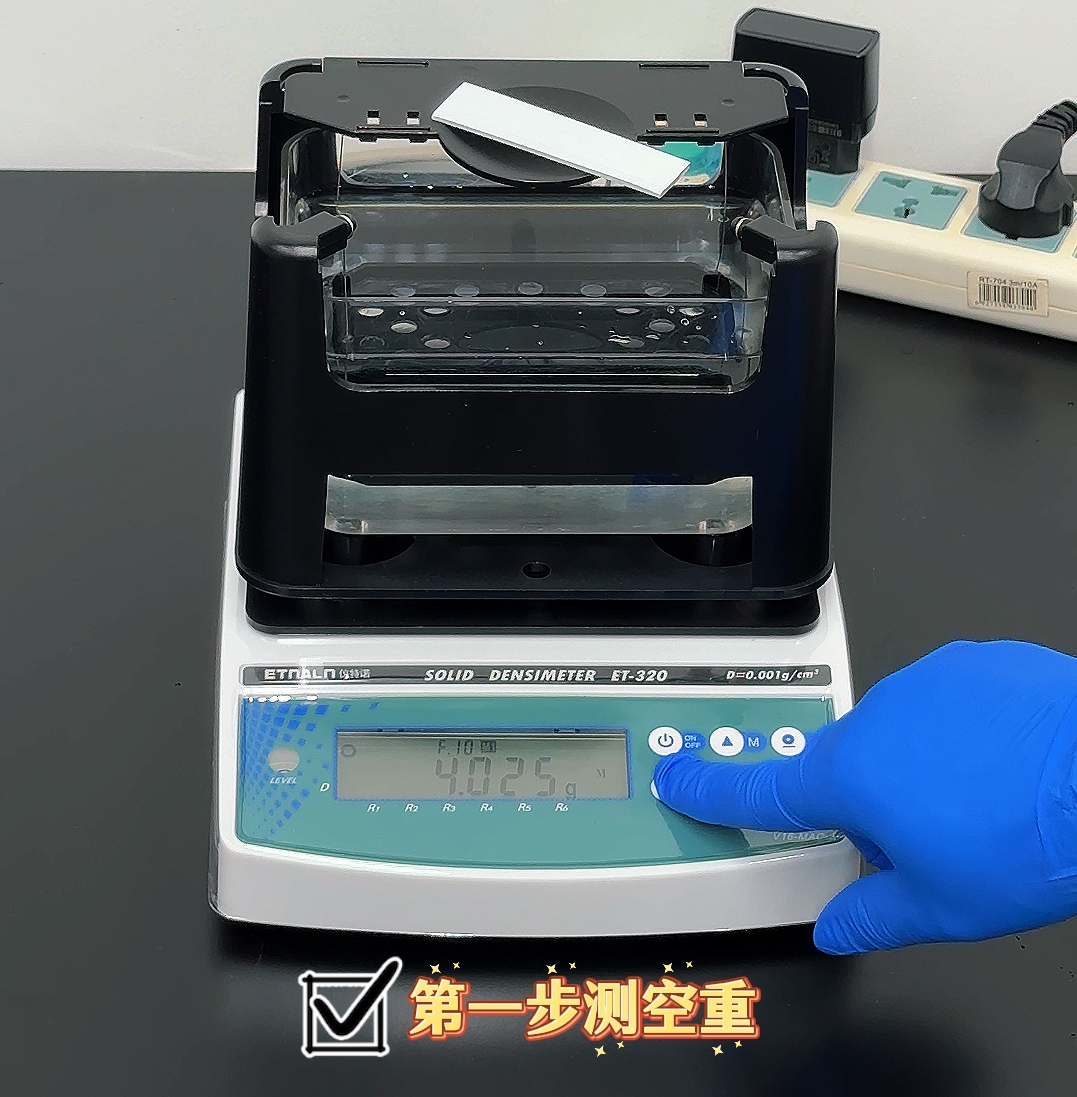 準(zhǔn)備好需要測試的樣品,準(zhǔn)備好儀器,開機(jī),在密度模式下,屏幕上顯示0.000的狀態(tài)下開始測量(如未顯示0.000,請按zero鍵使其歸零)